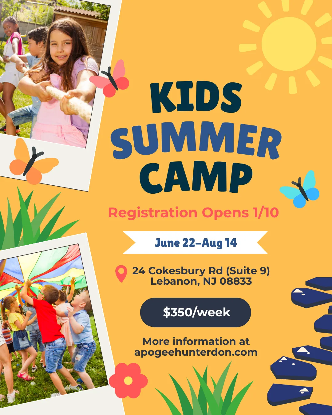 A non-refundable enrollment fee of $100 per child is due when enrollment is submitted. Payment for camp will be due by May 1st. The option to pay in full during enrollment is available. Notice of Cancellation: Please note that Apogee Hunterdon cannot issue refunds for tuition already paid.
